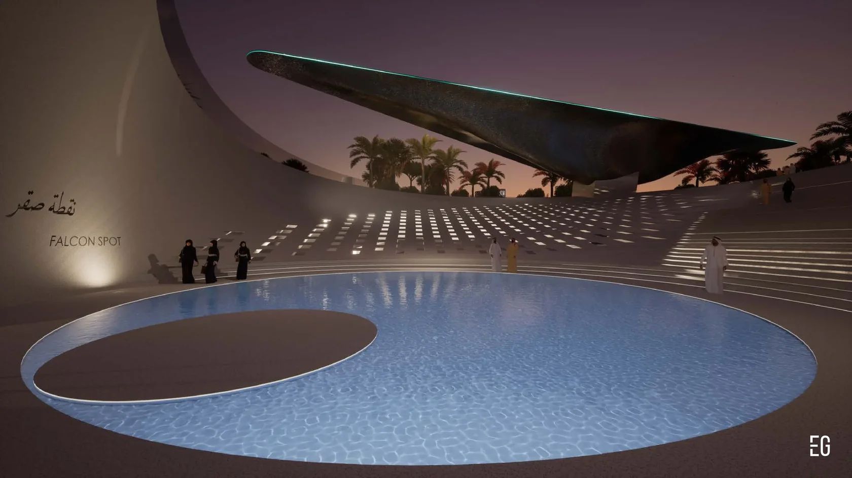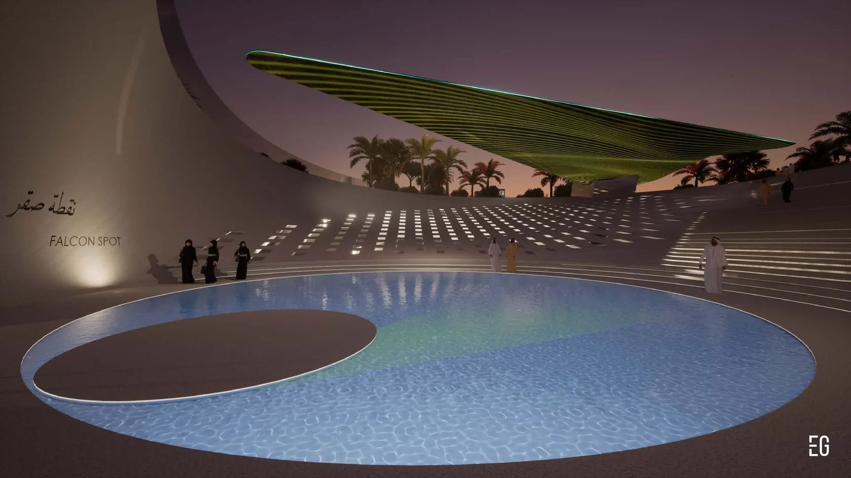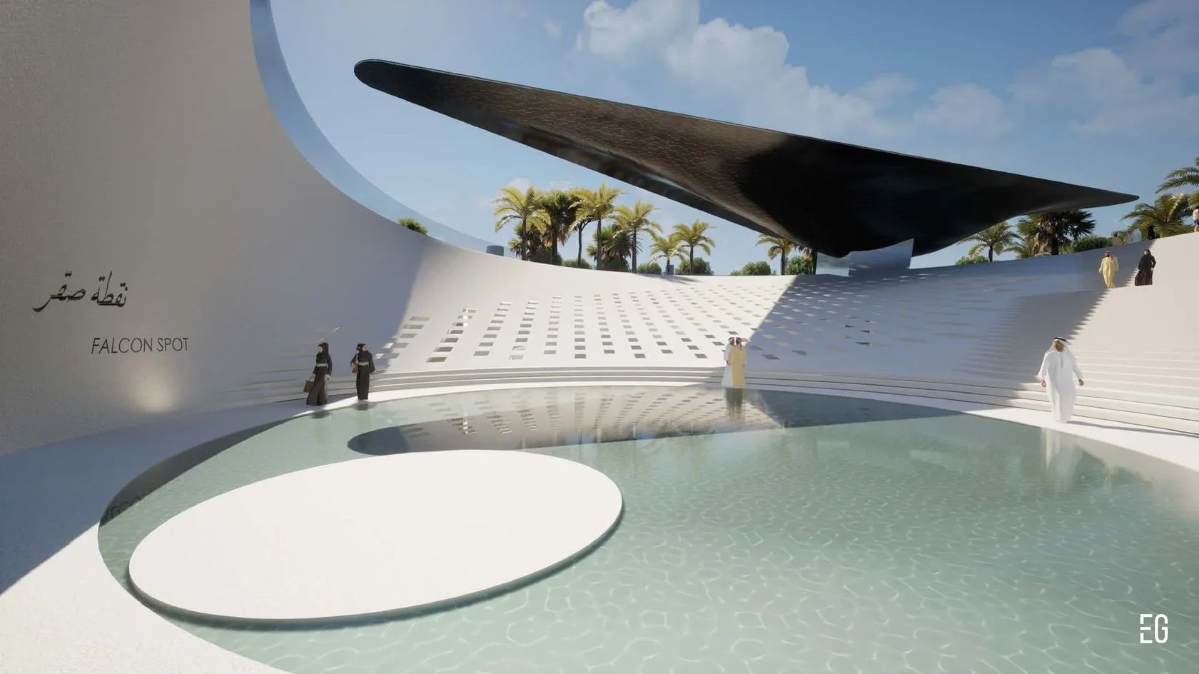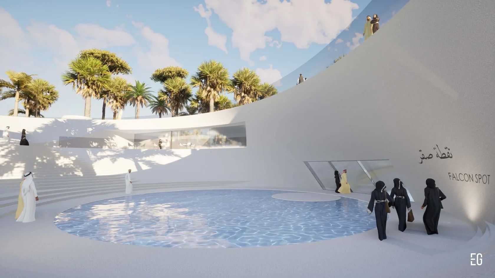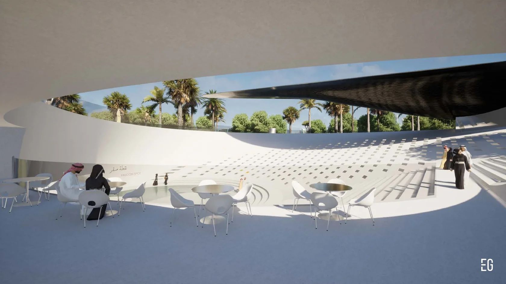 At the core of the concept is a metaphor drawn from the falcon itself: swift, graceful flight, elevation over vast landscapes, razor-sharp vision, and the resilience required to work with a proudly untamed nature. Set within the heart of an oasis park in Saudi Arabia, the museum embodies harmony with its surroundings while celebrating the cultural significance and singular beauty of these remarkable birds.