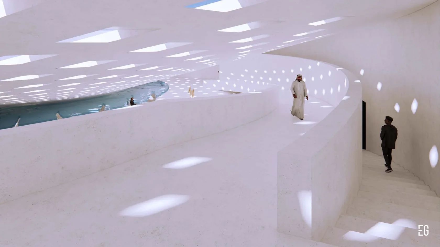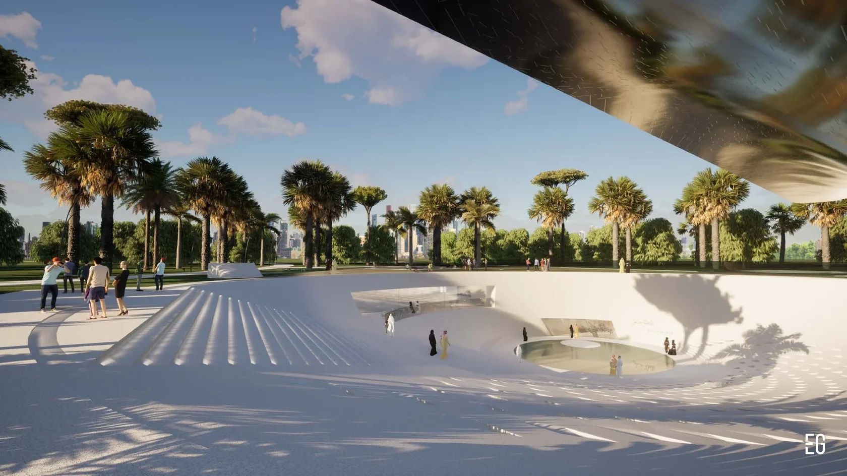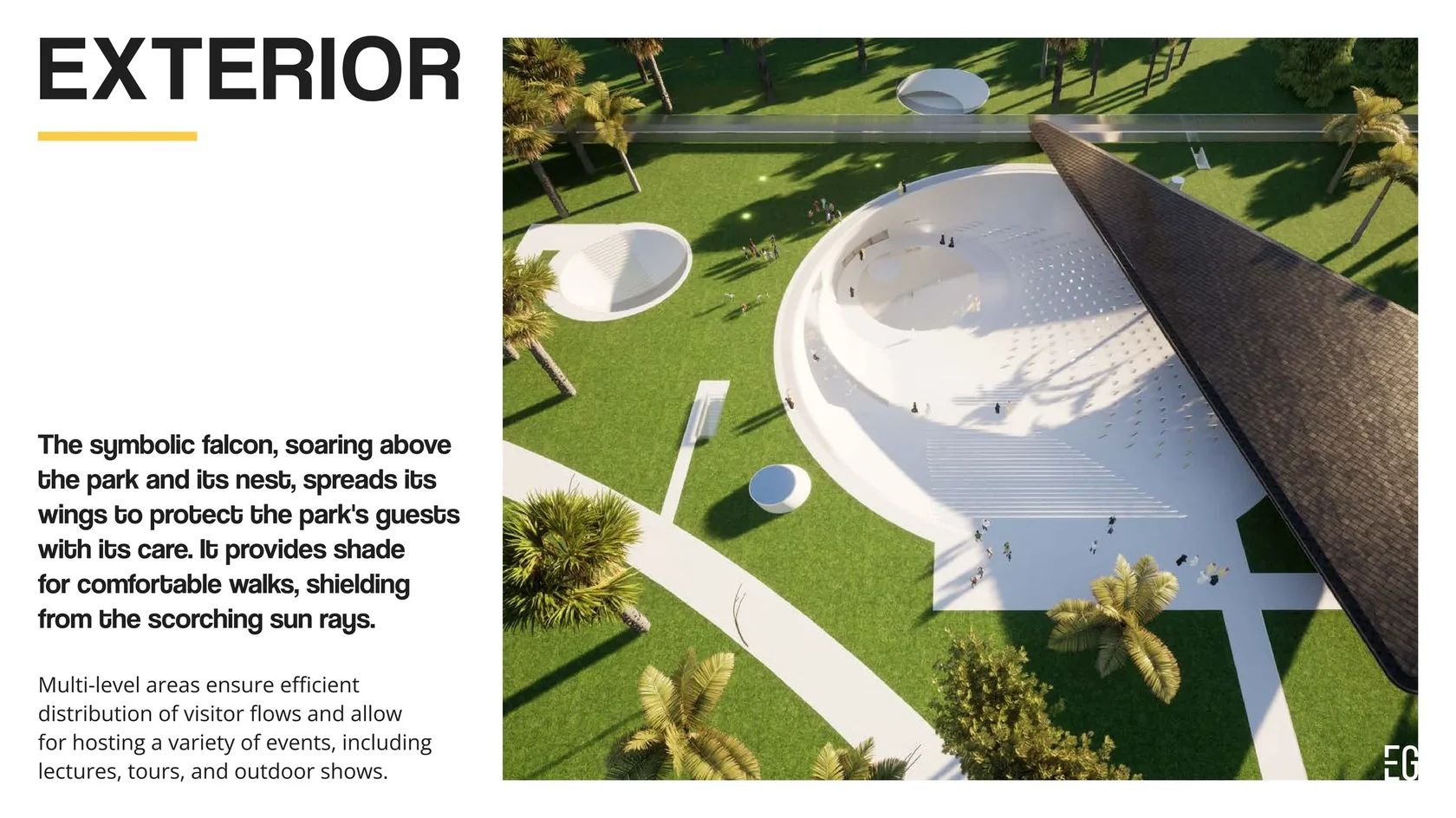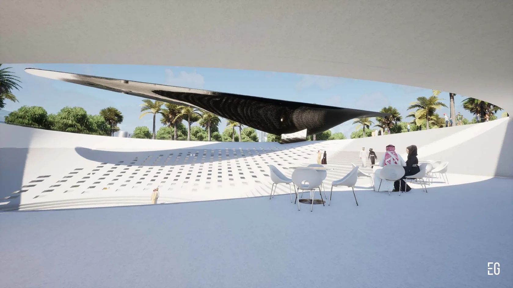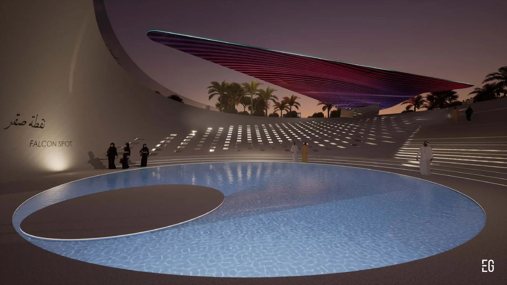 At the core of the concept is a metaphor drawn from the falcon itself: swift, graceful flight, elevation over vast landscapes, razor-sharp vision, and the resilience required to work with a proudly untamed nature. Set within the heart of an oasis park in Saudi Arabia, the museum embodies harmony with its surroundings while celebrating the cultural significance and singular beauty of these remarkable birds.