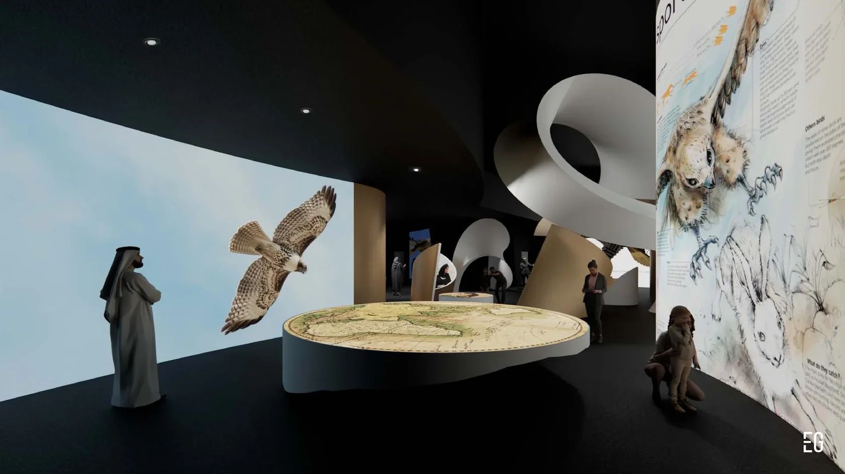 Our team was commissioned to create the concept design for the Falcons Museum. Conceived as an experience-driven institution, the museum offers deep engagement with the world of falcons—combining storytelling, live moments, interactive installations, and technology-enabled, play-based learning. The design aims to leave a lasting emotional imprint, encouraging visitors to explore further and to feel a genuine connection to the traditions of falconry.