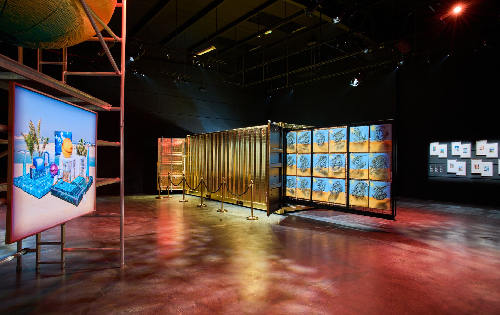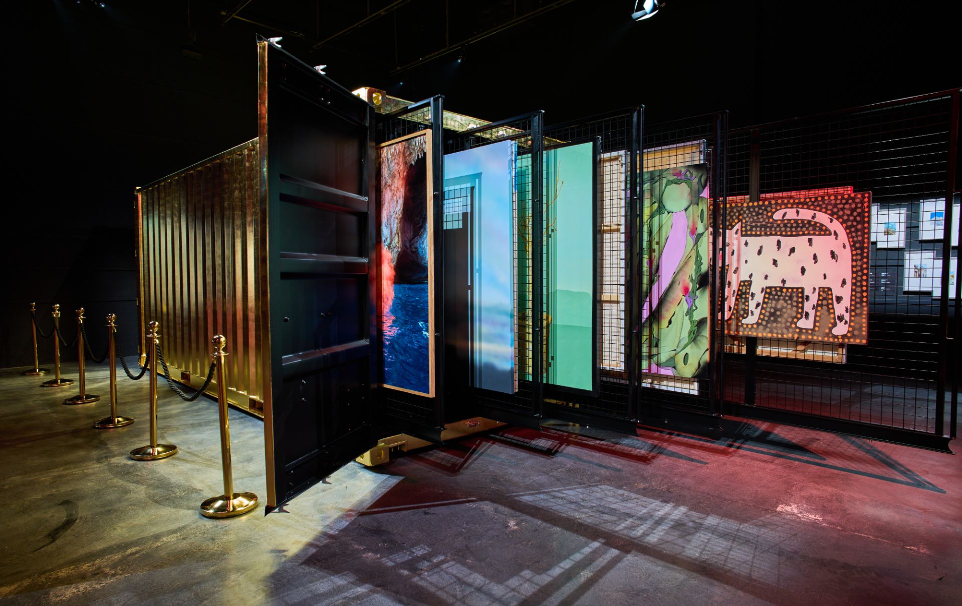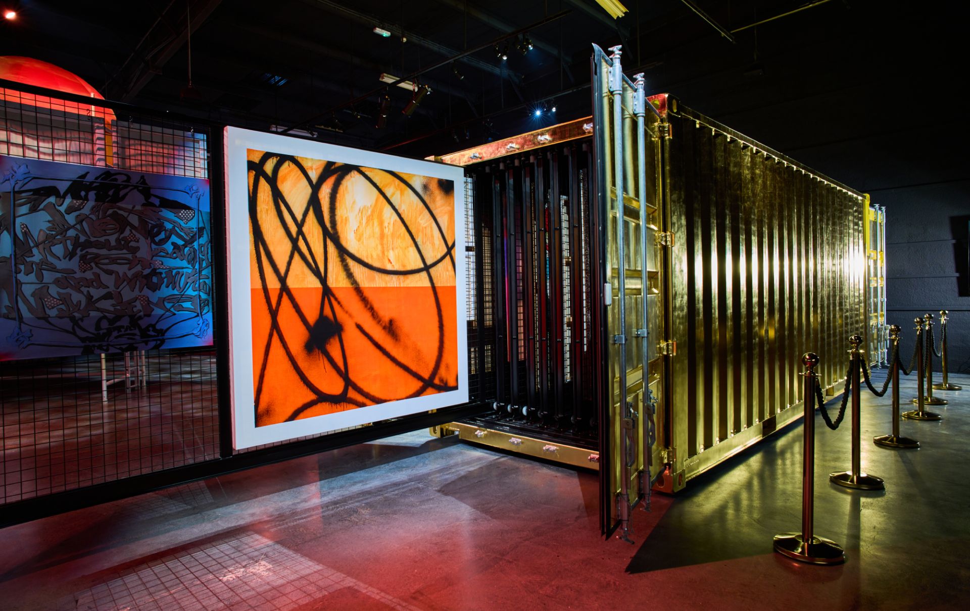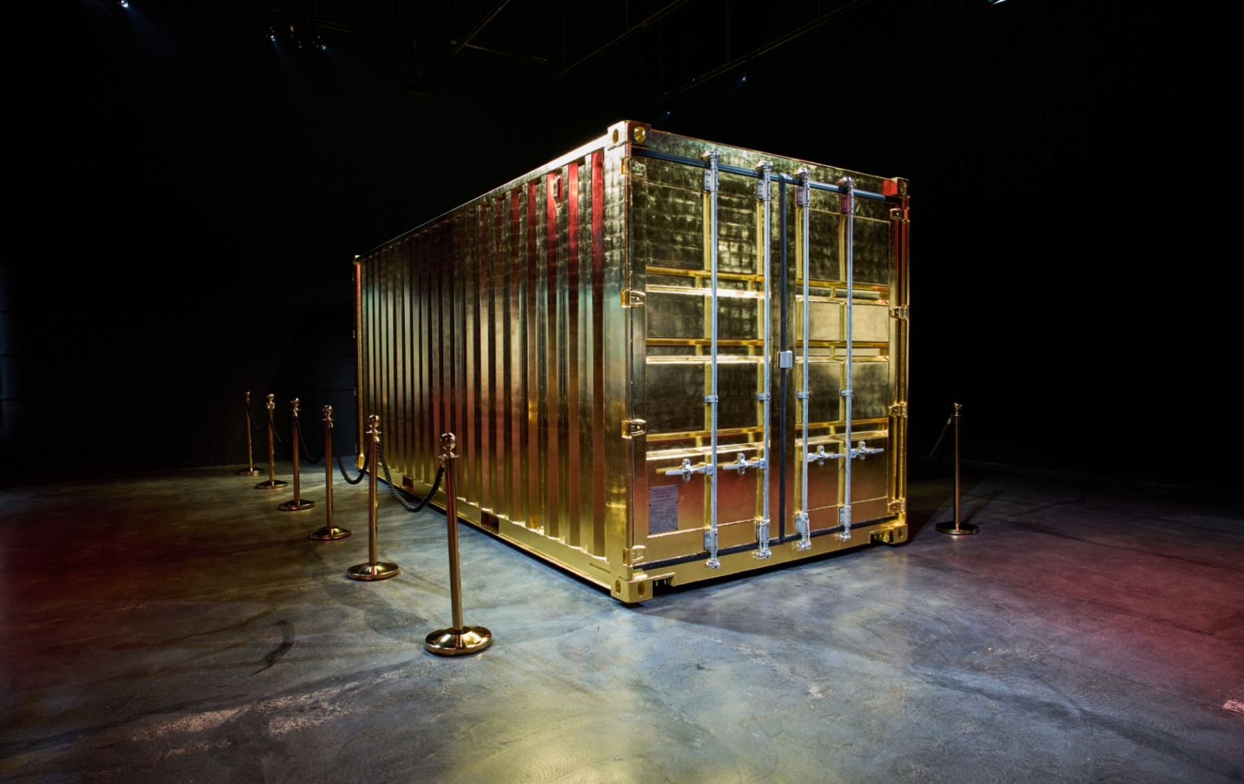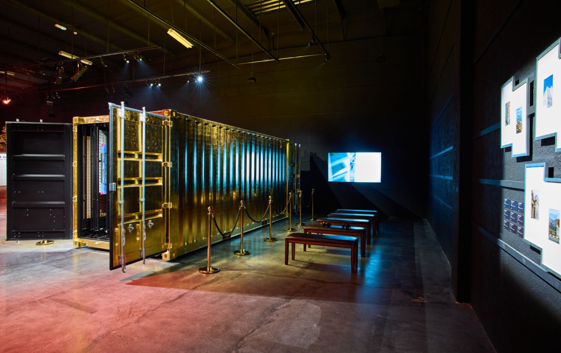 The Golden Container is a unique system for storing and displaying paintings. EG Production handled the design, production, and installation. It’s made from a 20″ shipping container covered with genuine gold leaf. Inside the container, there are 13 frames with meshes that can be extended on both sides, allowing paintings to be mounted on them. This way, the gallery can display a significant portion of its works within a limited gallery space.